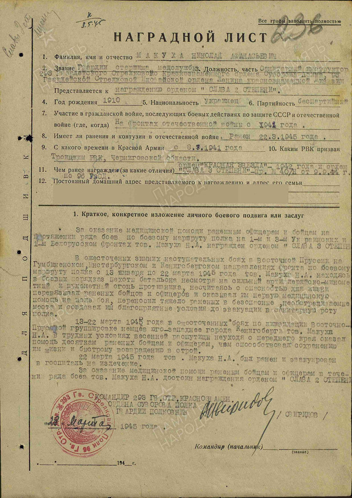 Место службы: 991 стрелковый полк 258 стрелковой дивизии (II);