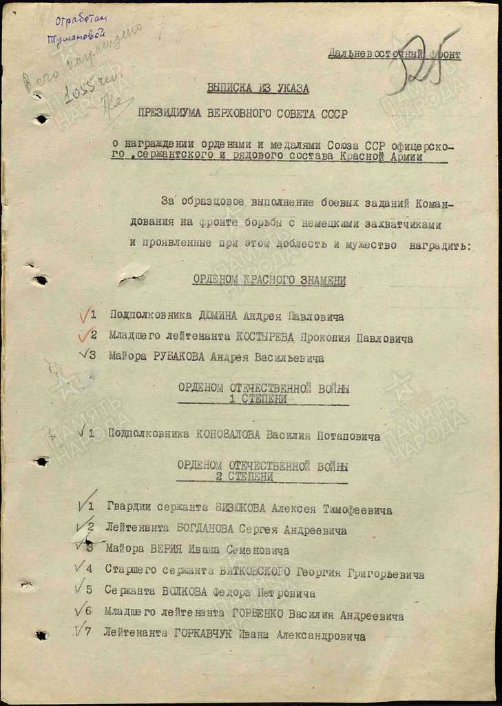 Дата призыва: май 1942 г. с. Елабуга Нанайский РВК