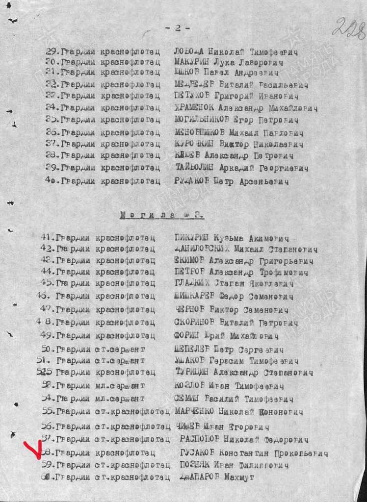Место перезахоронения: г. Чхонджин, пров. Хамгён-Пукто (КНДР), Корея, (г. Сейсин) братская могила № 1