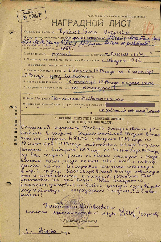 Участник боев: г. Смоленск