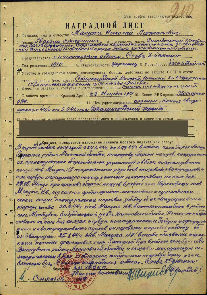 Место службы: 991 стрелковый полк 258 стрелковой дивизии (II);