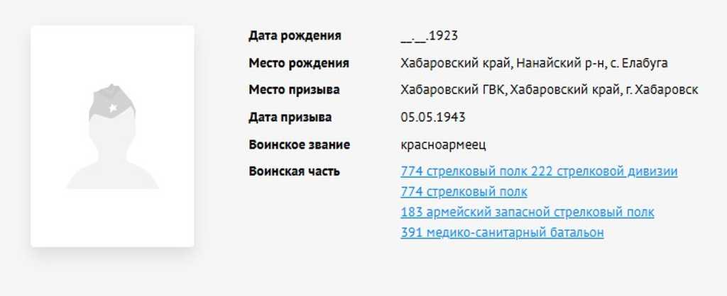 Дата призыва: май 1942 г. с. Елабуга Нанайский РВК