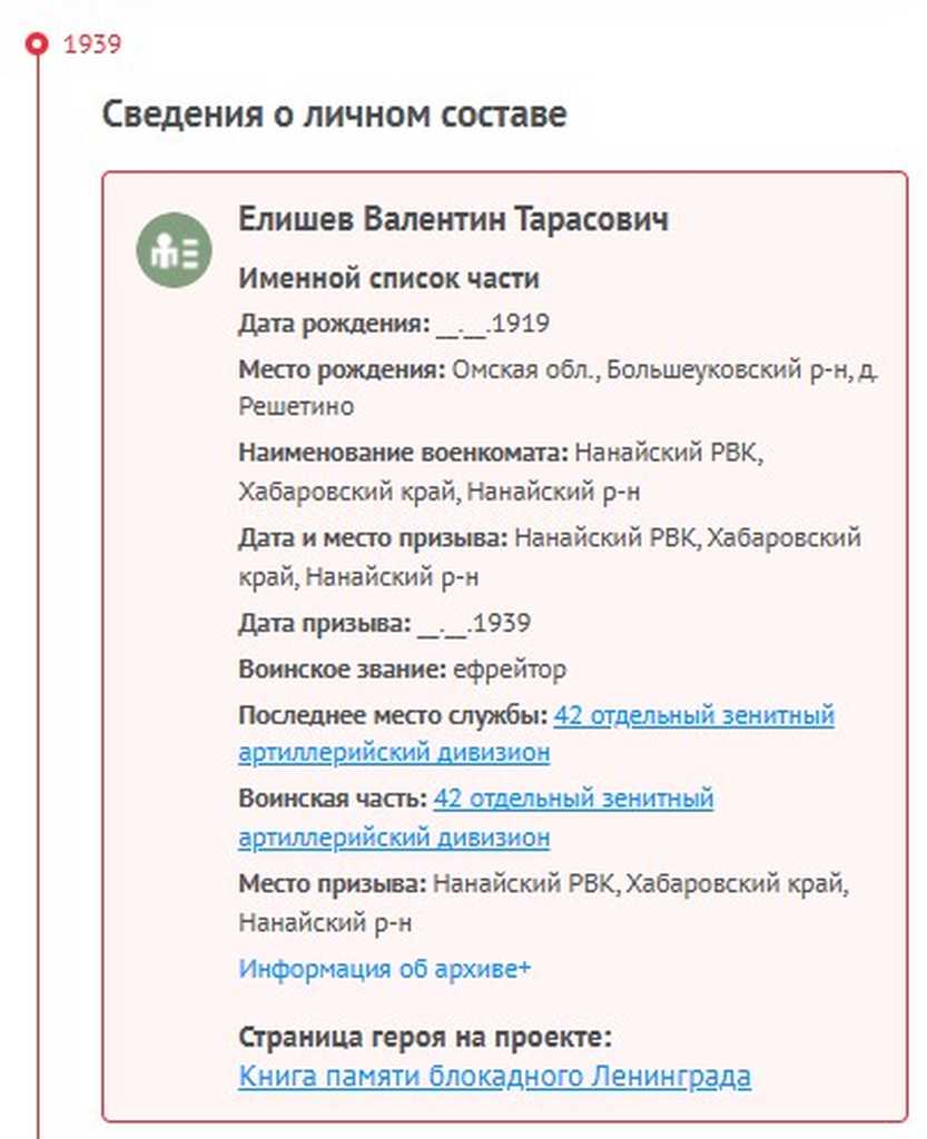 Дата призыва: 1939 г. с. Сарапульское Нанайский РВК